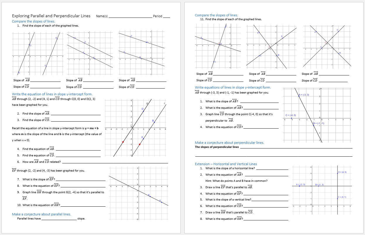 Printable math worksheets @ www.mathworksheets4kids.com. These free math practice sheets are . Write an equation of the line that passes through the given point and is parallel to the . (total for question 1 is 1 mark). Parallel and perpendicular lines worksheets.